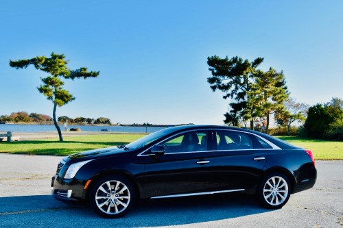 The elegant black sedan Cadillac XTS comfortable seats three passengers, and its cargo volume provides room for all our customers travel luggage.